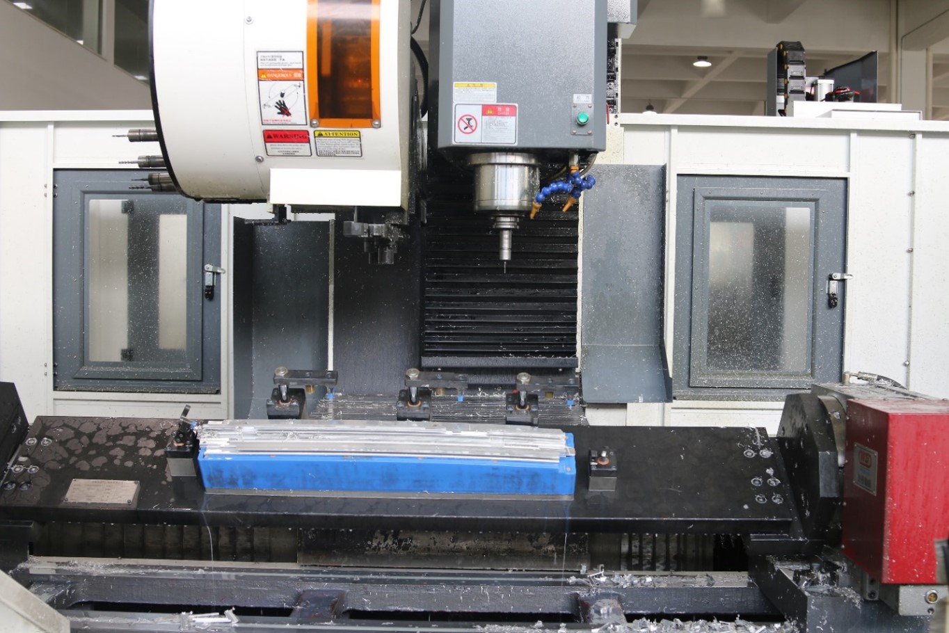 防護門導軌帶鈑金防護,防止廢屑進入,方便排屑;